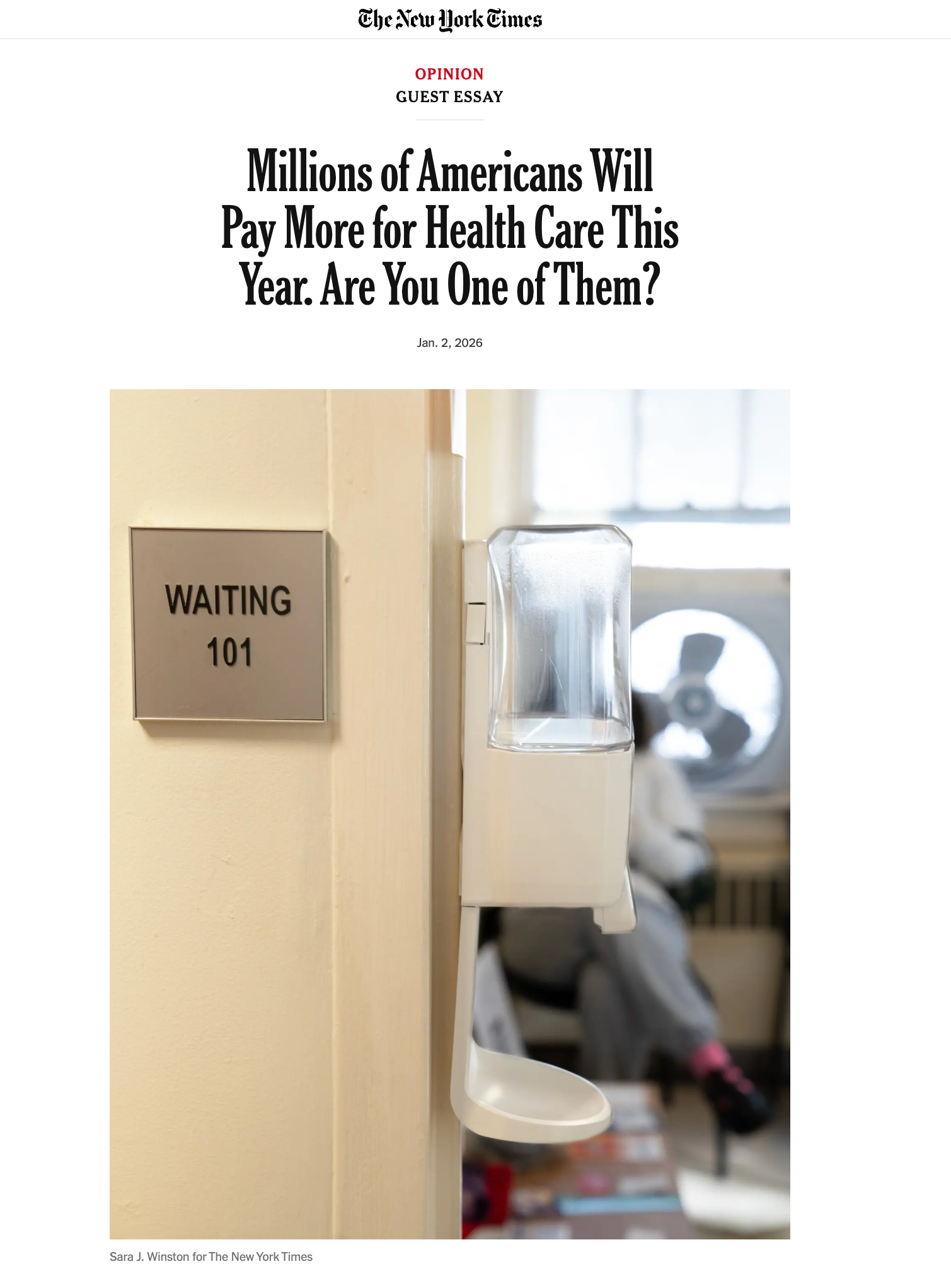 An image I made recently was featured in a New York Times Opinion Guest Essay titled “Millions of Americans Will Pay More for Healthcare This Year. Are You One of Them?” by Alex Ellerbeck, published on January 2, 2026. I am remain heartbroken and angry about the current state of affairs and also grateful to have my work accompany this Opinion essay.